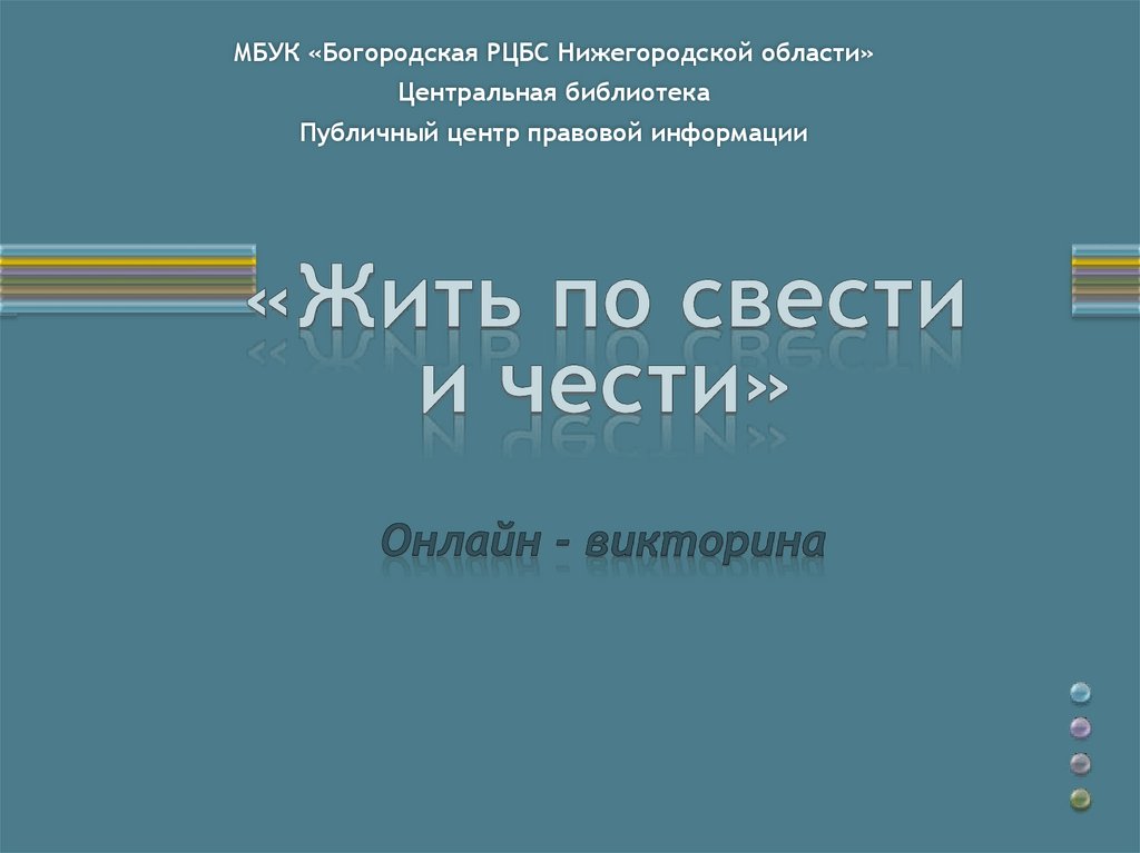 МБУК «Богородская РЦБС Нижегородской области»Центральная библиотека