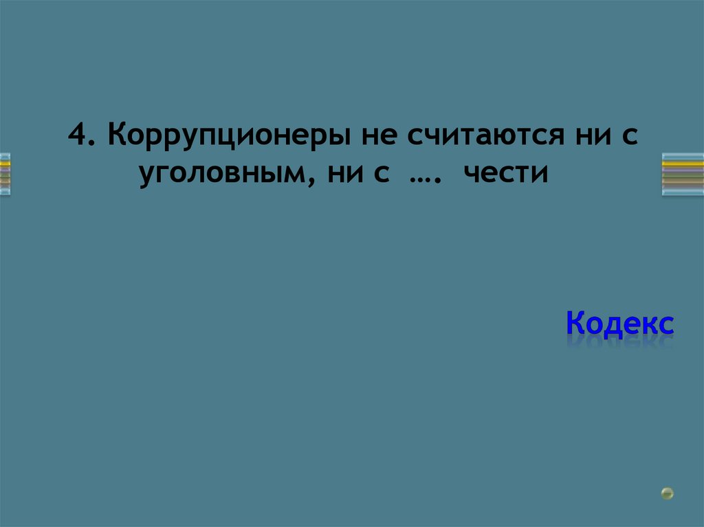 4. Коррупционеры не считаются ни суголовным, ни с …. чести