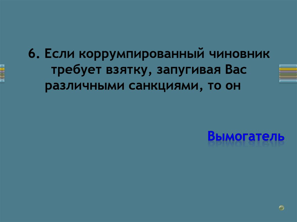 6. Если коррумпированный чиновниктребует взятку, запугивая Вас
