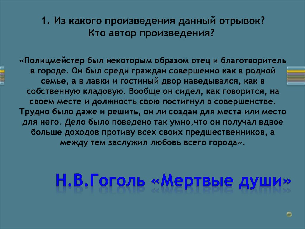 1. Из какого произведения данный отрывок?Кто автор произведения?