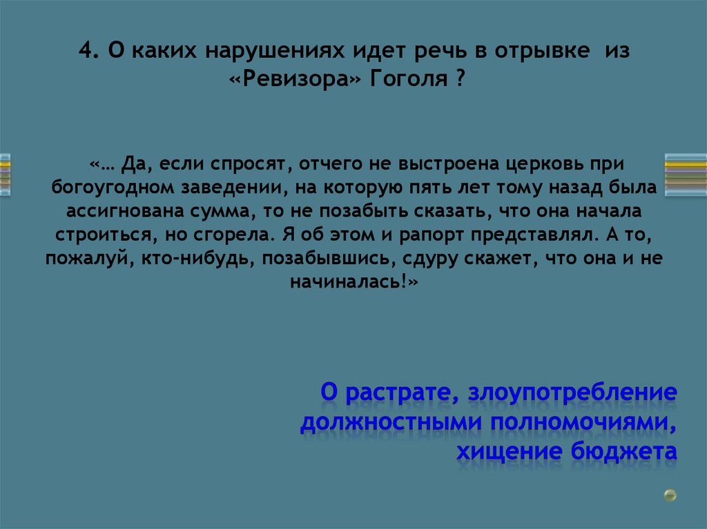 4. О каких нарушениях идет речь в отрывке из«Ревизора» Гоголя ?
