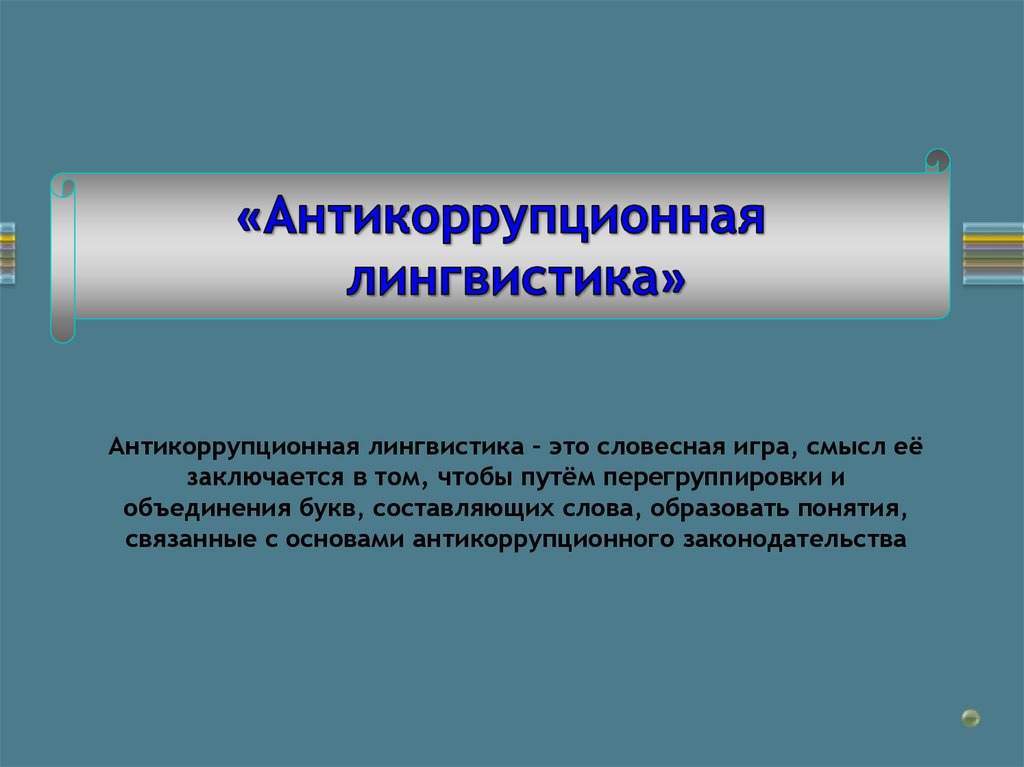 Антикоррупционная лингвистика - это словесная игра, смысл еёзаключается в том, чтобы путём перегруппировки и