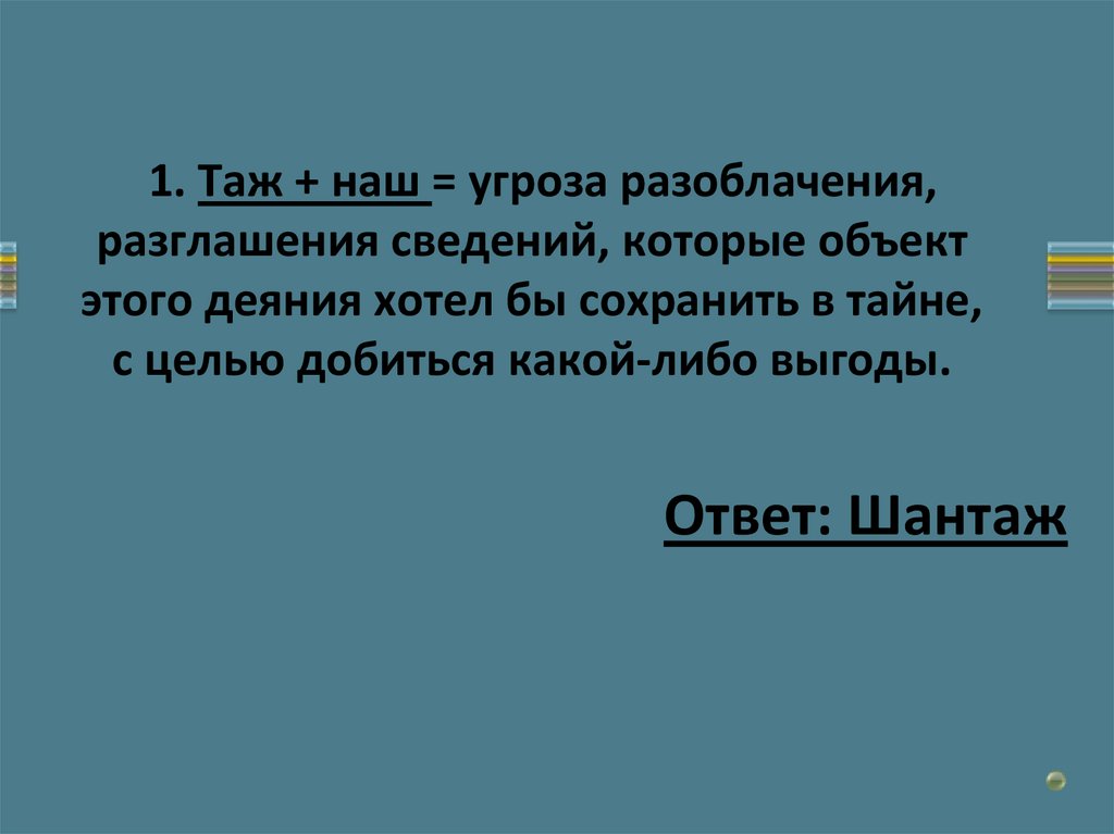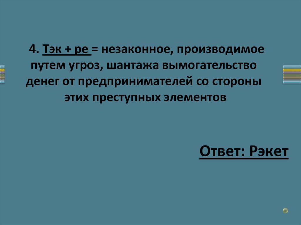 4. Тэк + ре = незаконное, производимоепутем угроз, шантажа вымогательство