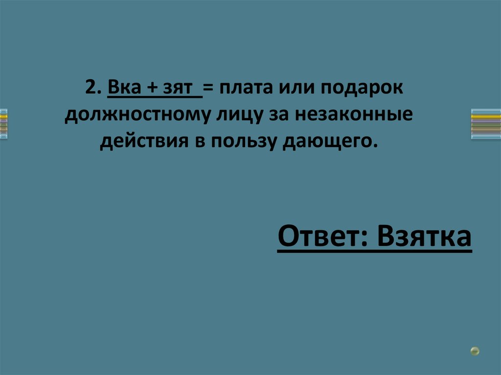 2. Вка + зят = плата или подарокдолжностному лицу за незаконные