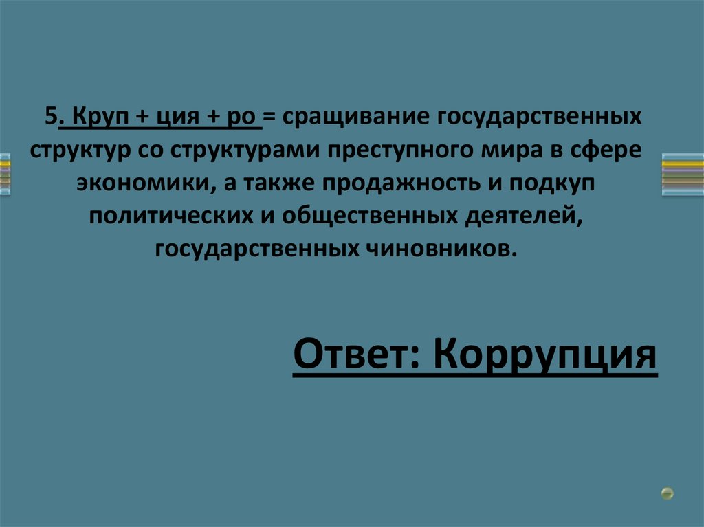 5. Круп + ция + ро = сращивание государственныхструктур со структурами преступного мира в сфере