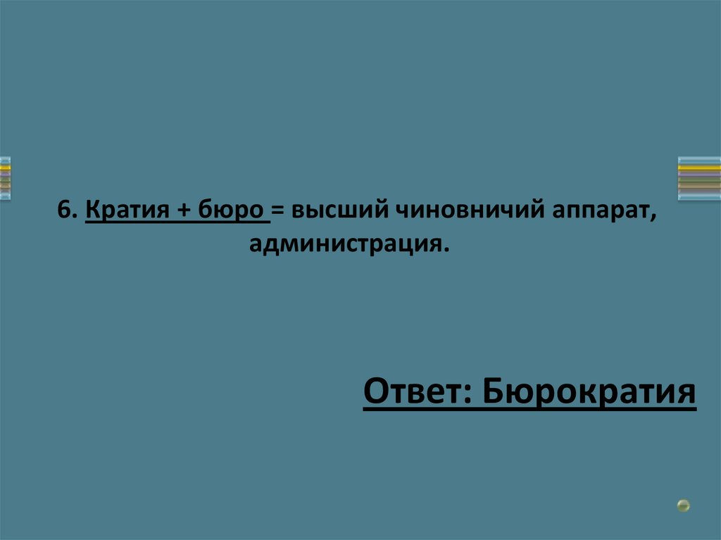 6. Кратия + бюро = высший чиновничий аппарат,администрация.