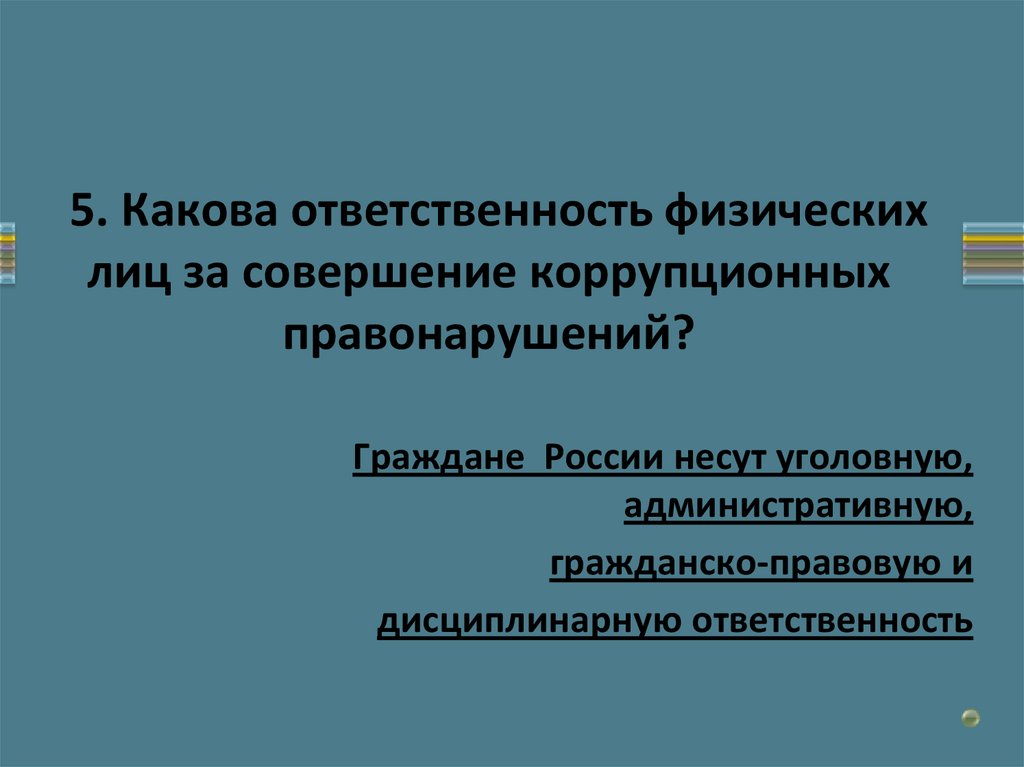 5. Какова ответственность физическихлиц за совершение коррупционных