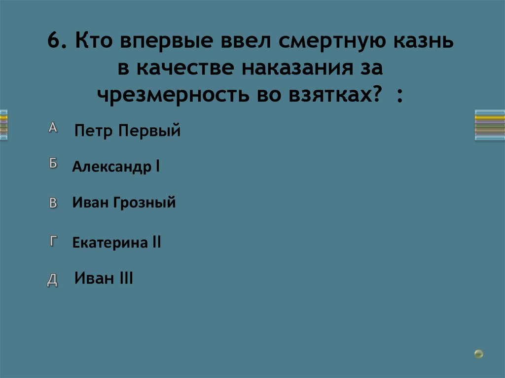 6. Кто впервые ввел смертную казньв качестве наказания за