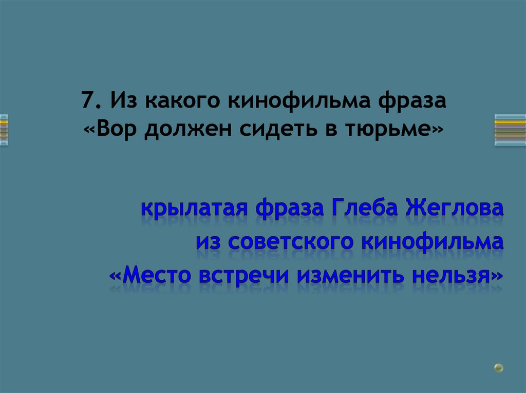 7. Из какого кинофильма фраза«Вор должен сидеть в тюрьме»