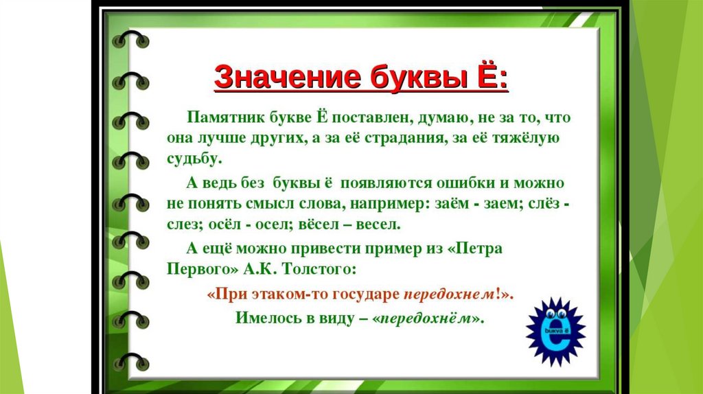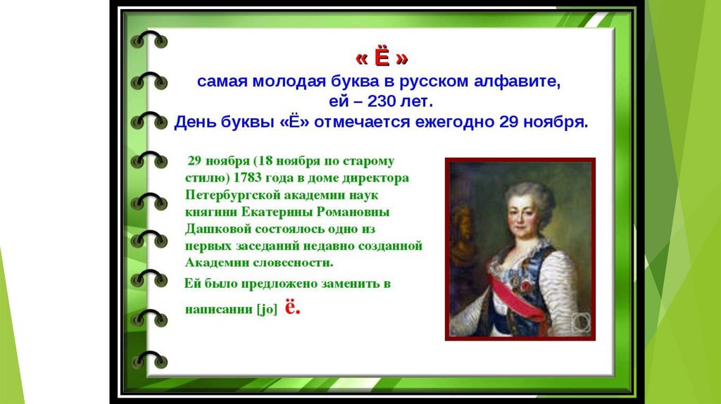 Впервые буква Ё использовалась при написании «Бедная Лиза»