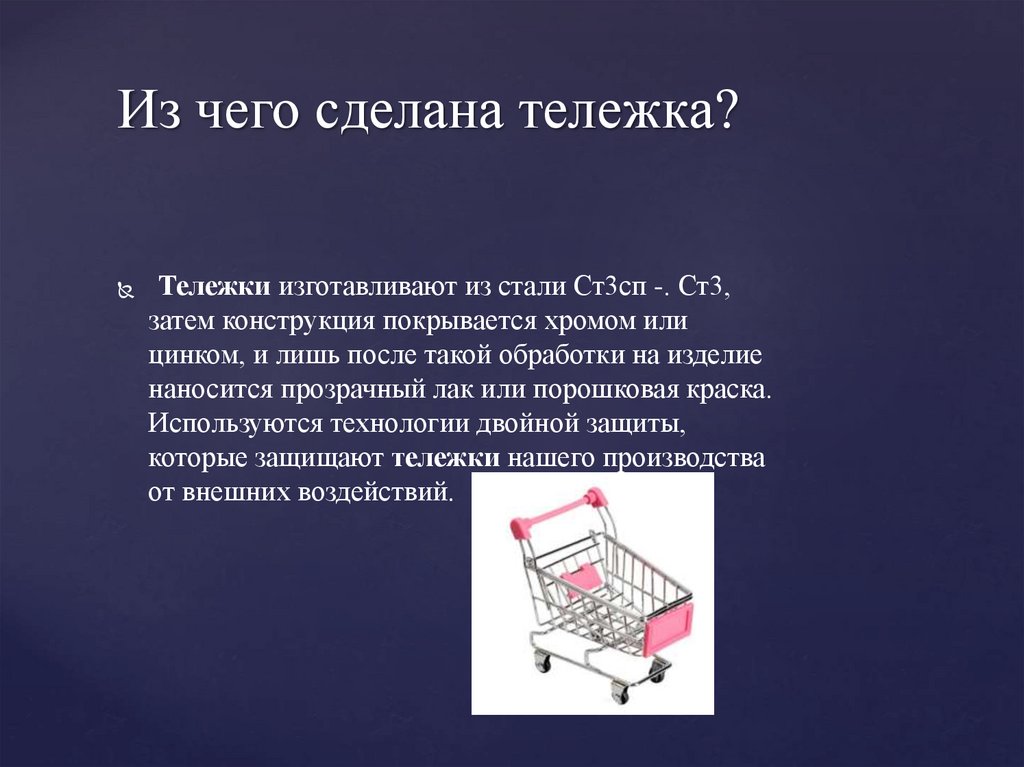 Из чего сделана тележка?Тележки изготавливают из стали Ст3сп -. Ст3,