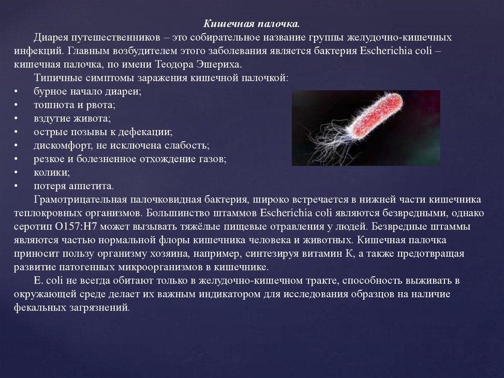 Кишечная палочка.Диарея путешественников – это собирательное название группы желудочно-кишечных