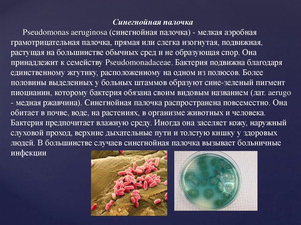 - медная ржавчина). Синегнойная палочка распространена повсеместно. Она