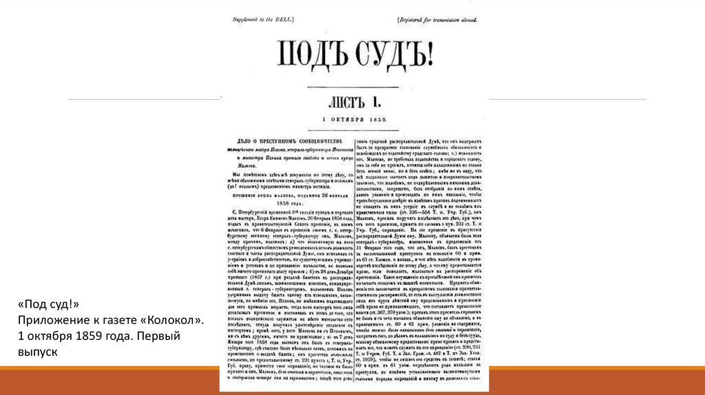 «Под суд!»Приложение к газете «Колокол».