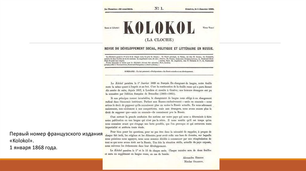 Первый номер французского издания«Kolokol».