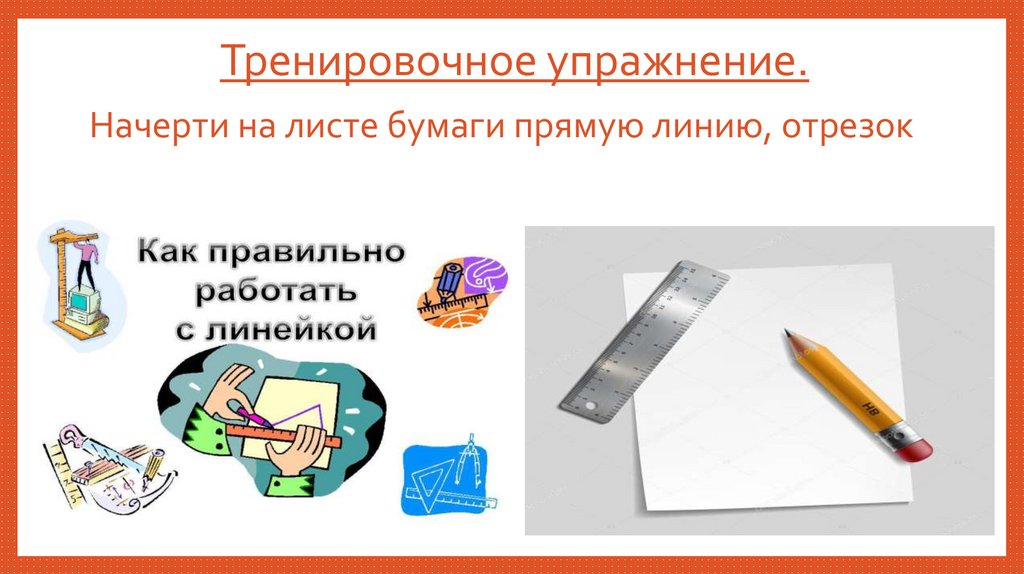 Тренировочное упражнение.Начерти на листе бумаги прямую линию, отрезок