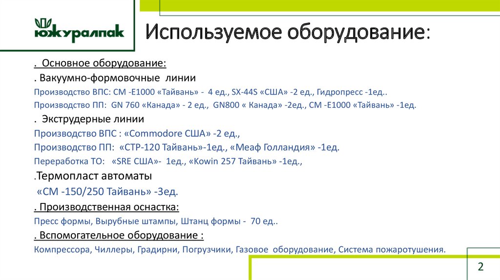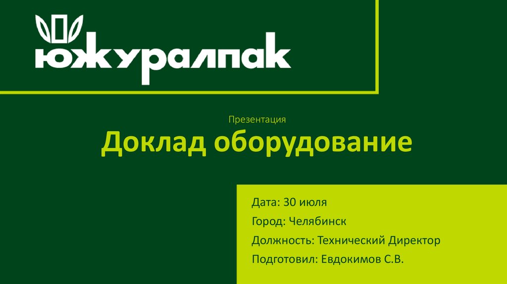 Доклад оборудование. Компания «Южуралпак», г. Челябинск