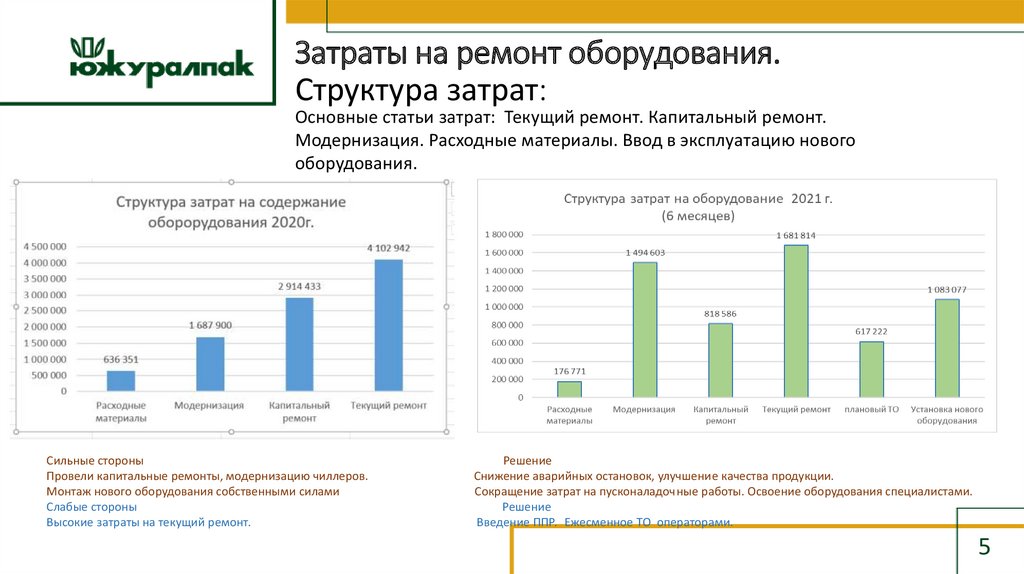Возможности по оптимизации:Сокращение затрат на ремонт оборудование необходимо :