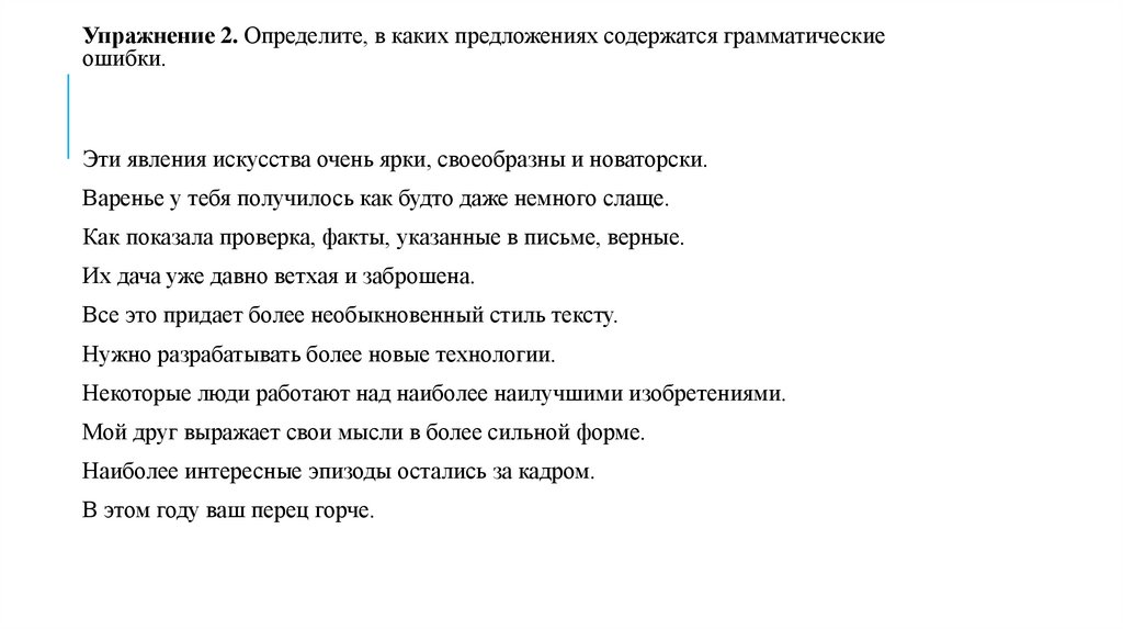 Упражнение 2. Определите, в каких предложениях содержатся грамматическиеошибки.