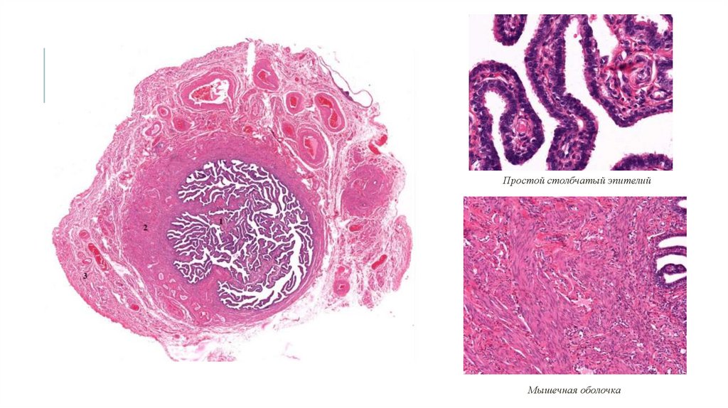 железы и теряется во время менструации. Состоит из: простого столбчатого эпителия