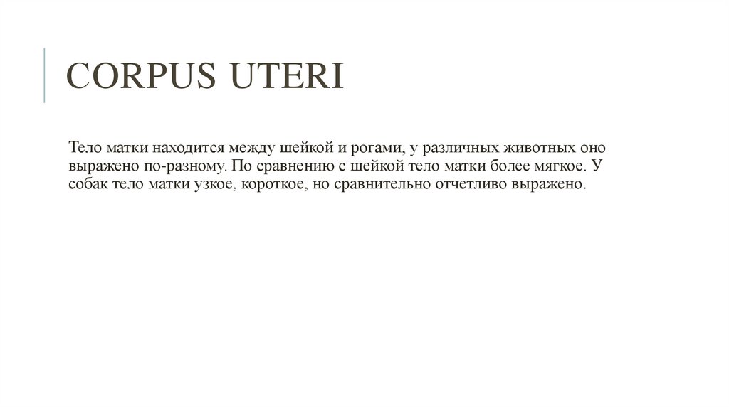 СORPUS UTERIТело матки находится между шейкой и рогами, у различных животных оно