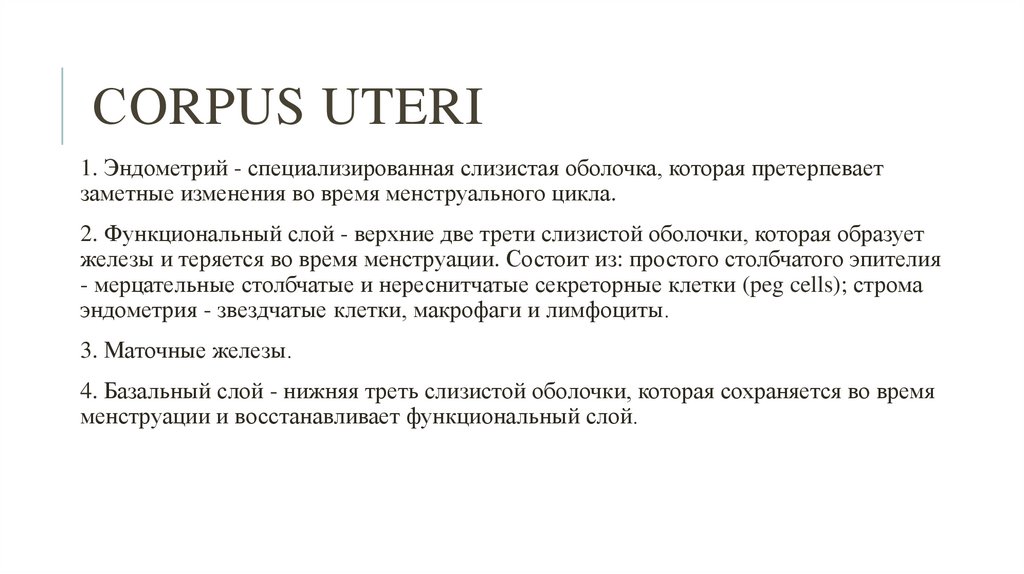 СORPUS UTERI1. Эндометрий - специализированная слизистая оболочка, которая претерпевает