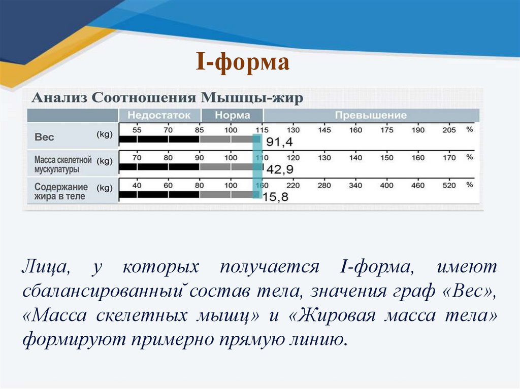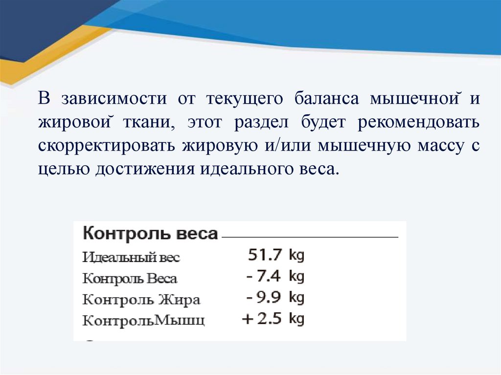 В зависимости от текущего баланса мышечной ижировой ткани, этот раздел будет рекомендовать