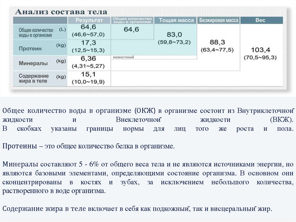 отличие от значения ТМТ (Тощая масса тела), которое включает в себя всё,
