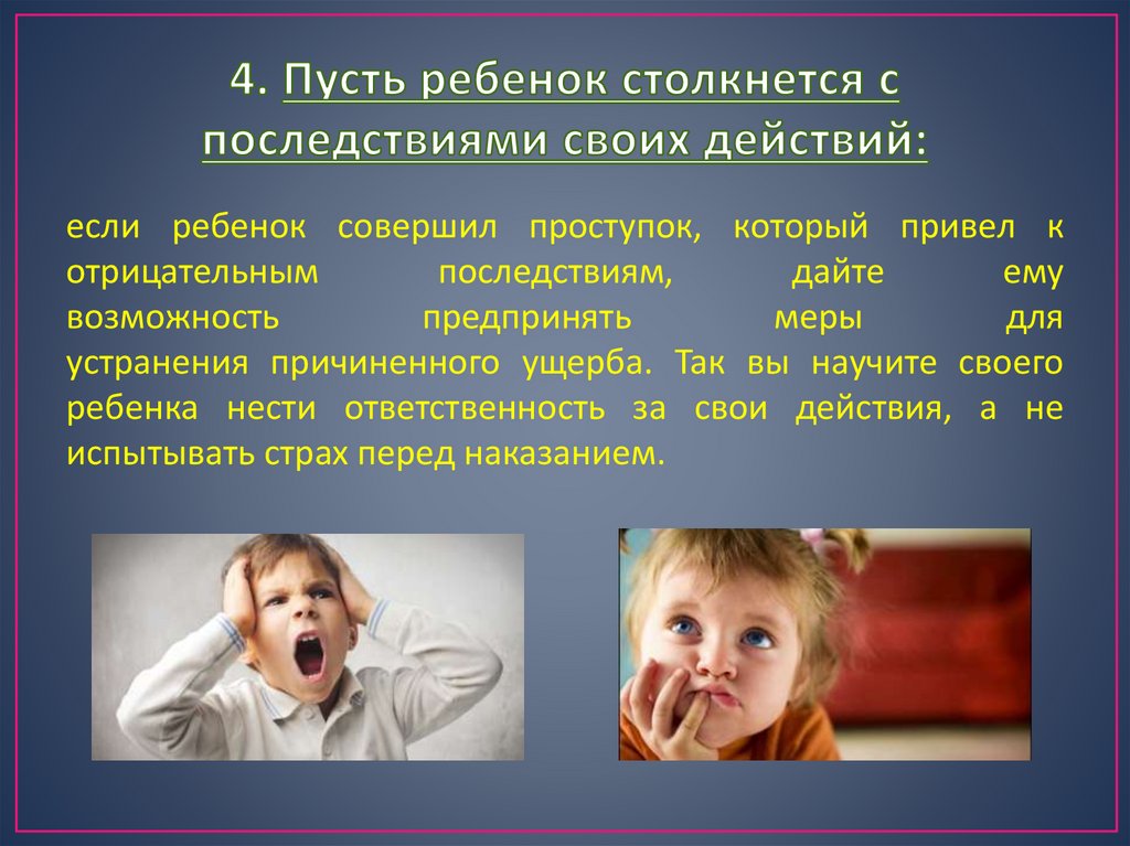 ребенка нести ответственность за свои действия, а не