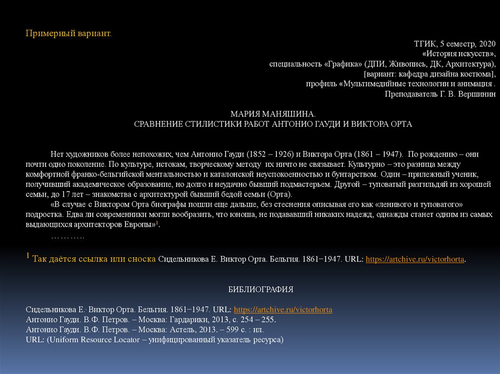 1 Так даётся ссылка или сноска Сидельникова Е. Виктор Орта. Бельгия. 1861−1947. URL: https://artchive.ru/victorhorta.