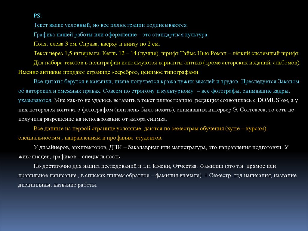 правильное написание , в списках пишем обратное – фамилия вначале). + Семестр, год написания, название