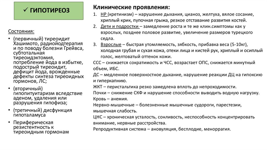 ГИПОТИРЕОЗСостояния: