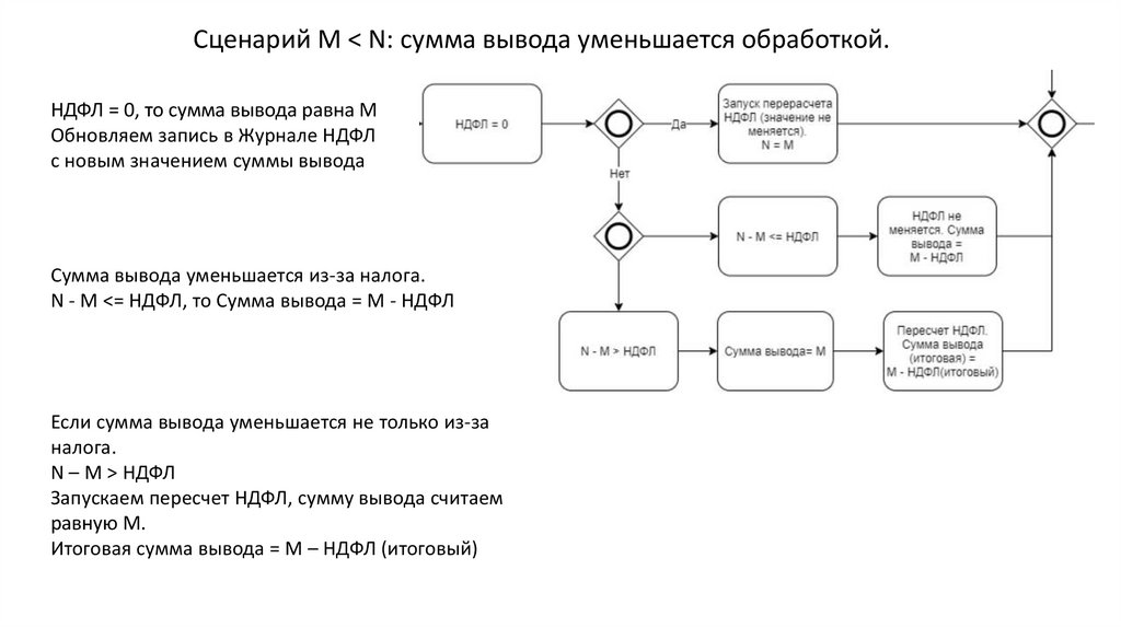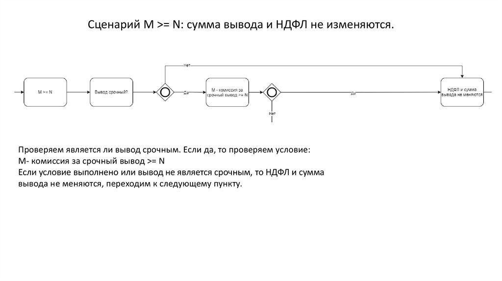 Сценарий М >= N: сумма вывода и НДФЛ не изменяются.Проверяем является ли вывод срочным. Если да, то проверяем условие: