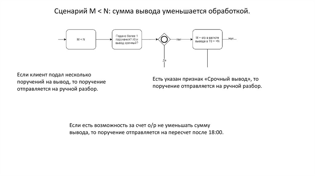 Сценарий М < N: сумма вывода уменьшается обработкой.Если клиент подал несколько