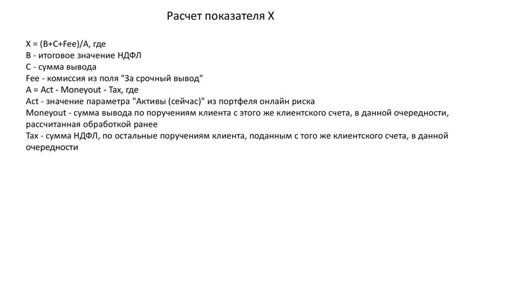 Расчет показателя ХX = (B+C+Fee)/A, где