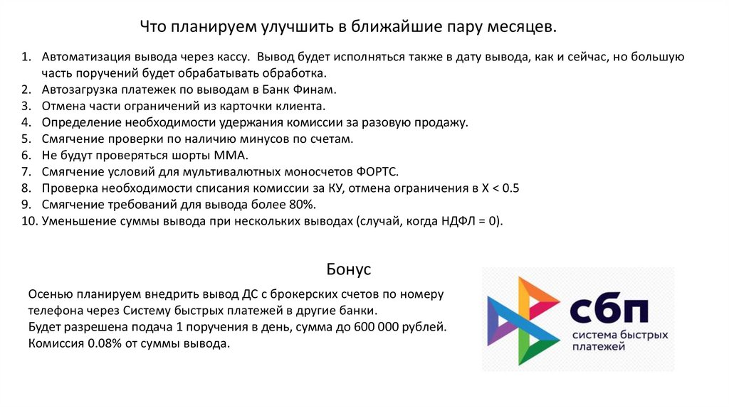 Осенью планируем внедрить вывод ДС с брокерских счетов по номеру