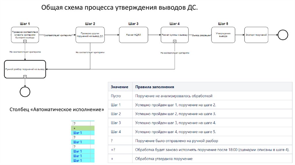 Общая схема процесса утверждения выводов ДС.Столбец «Автоматическое исполнение»