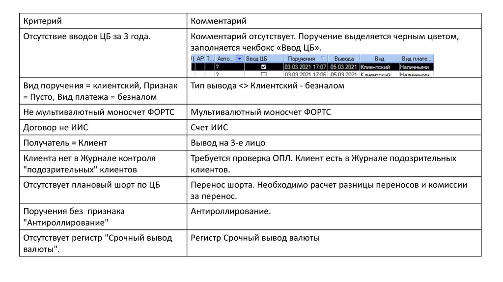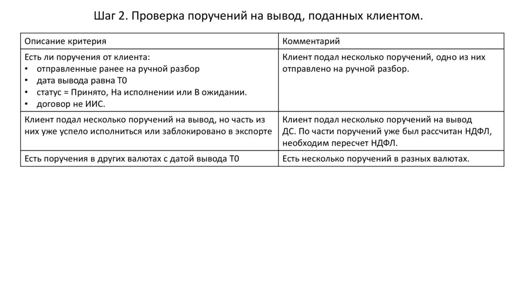 Происходит проверка поручений по следующим критериям (см. ниже). Если поручение не