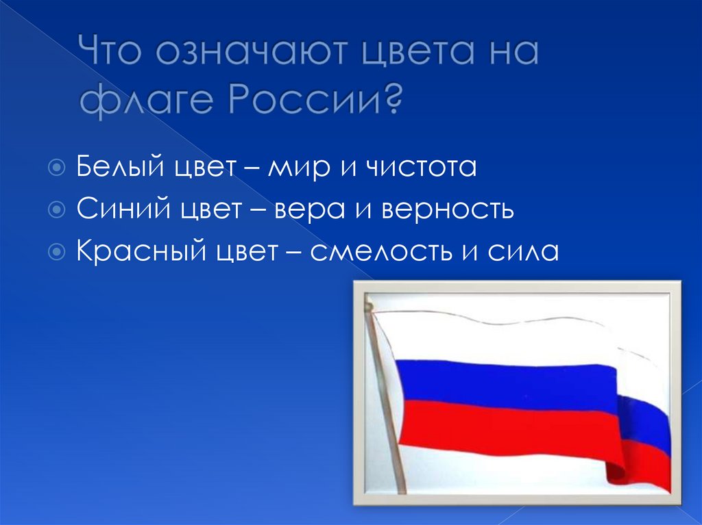 Белый цвет – мир и чистотаСиний цвет – вера и верность