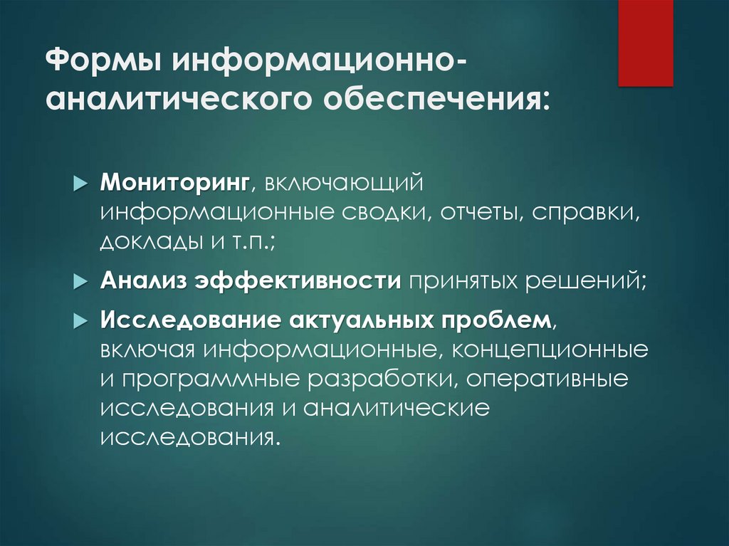 Формы информационноаналитического обеспечения:Мониторинг, включающий