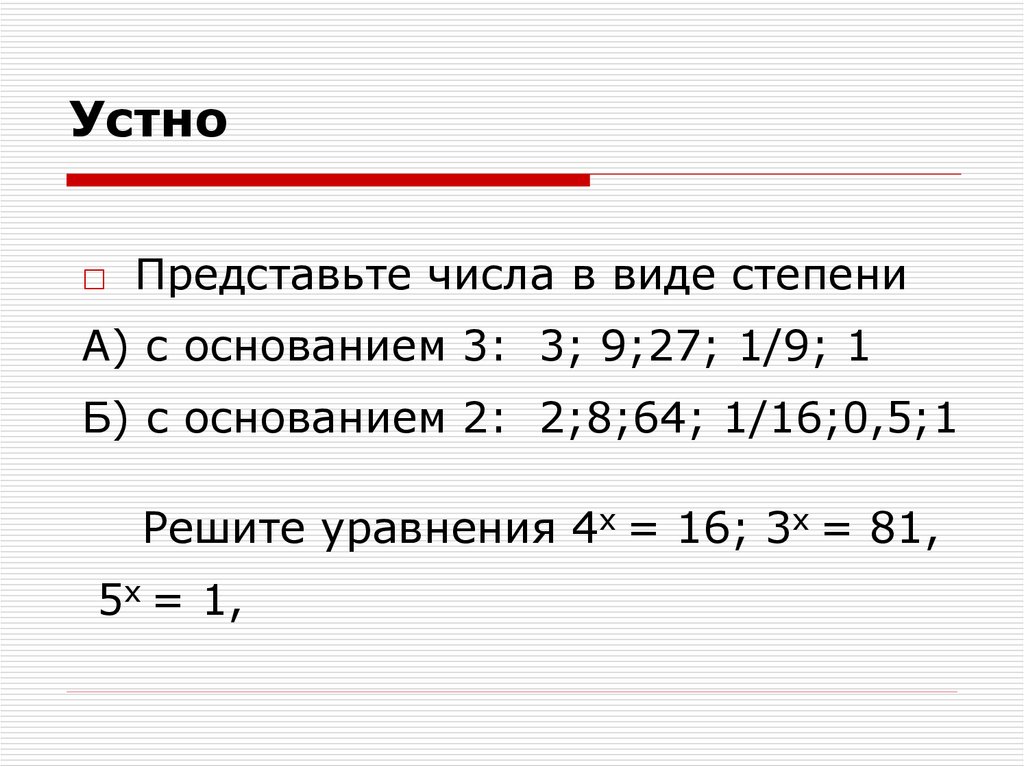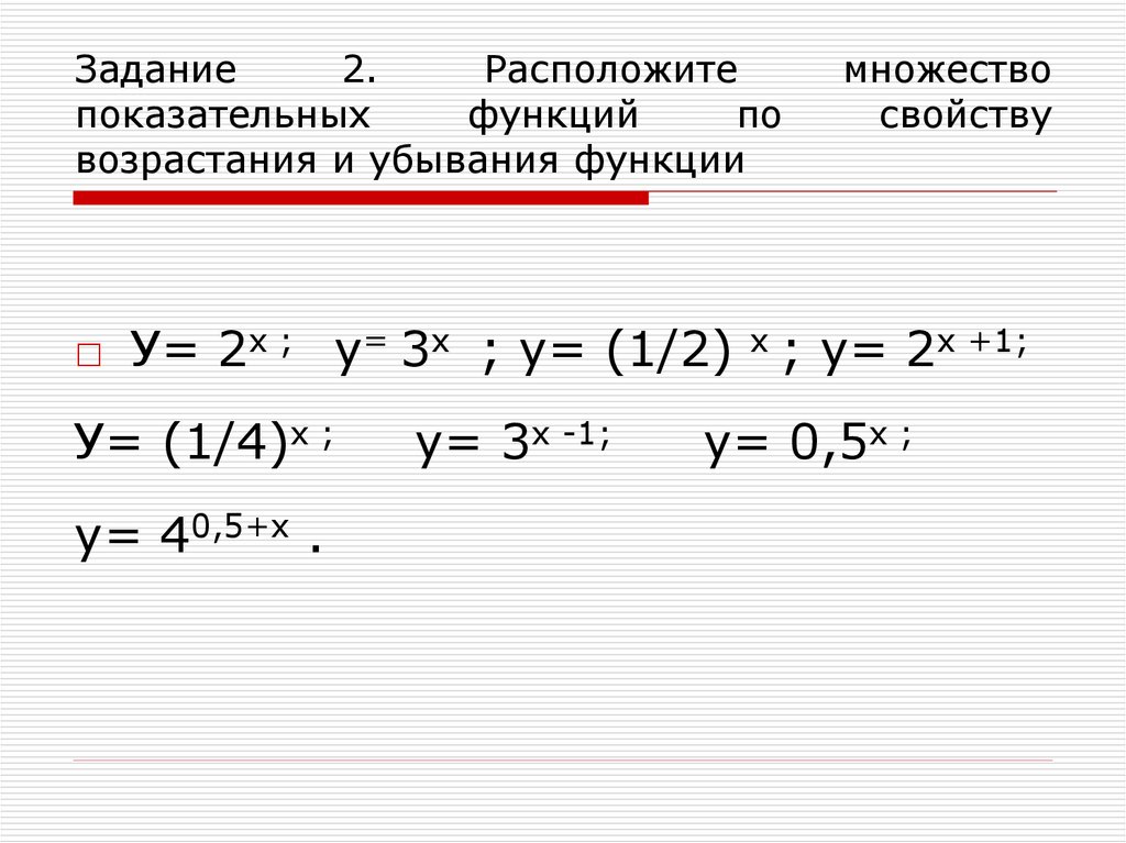 □ У= 2х ; у= 3х ; у= (1/2) х ; у= 2х +1;