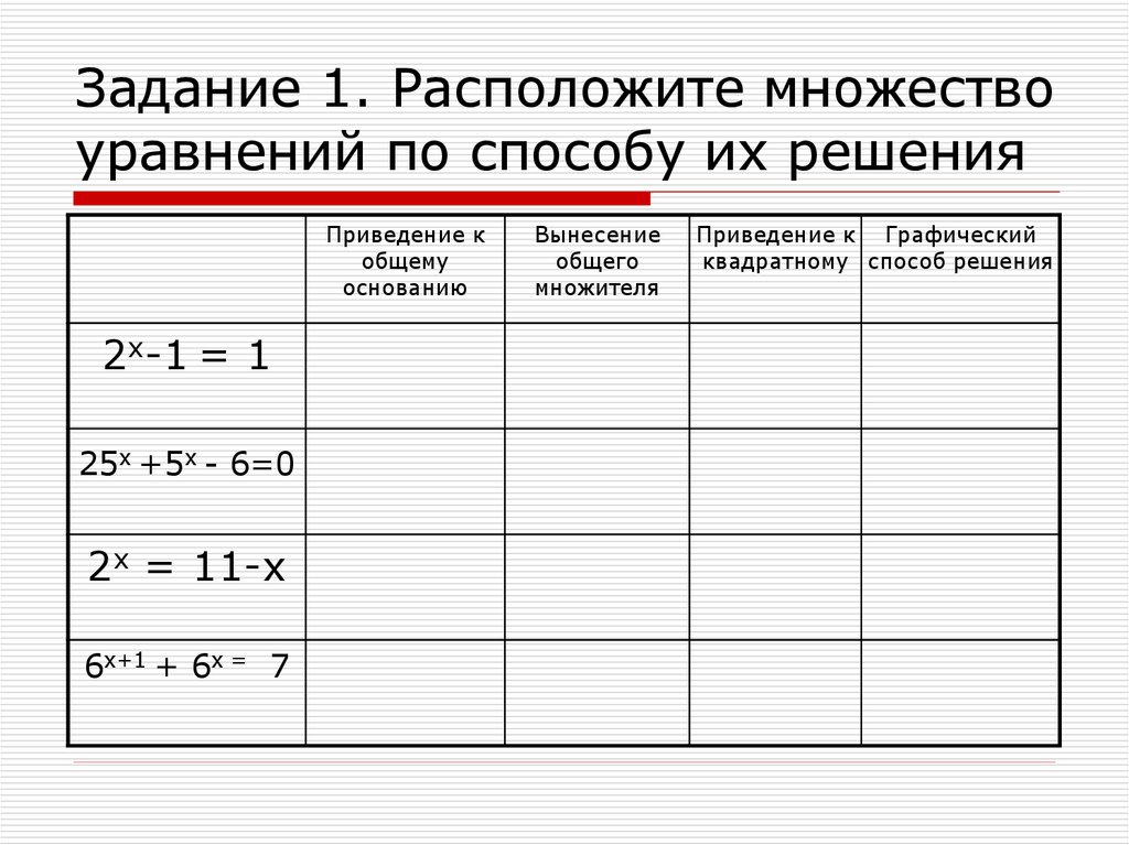 Задание 4. В заданных уравнениях укажитеспособ решения. Найдите решение.