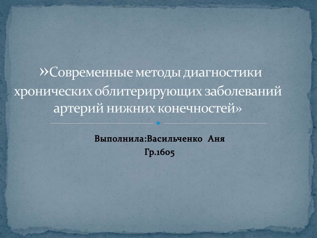 Современные методы диагностики хронических облитерирующих заболеваний артерий нижних конечностей