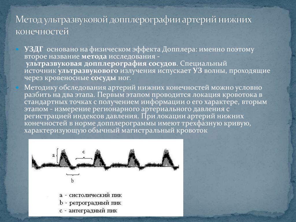 Использование современных методов диагностики(ультразвуковая допплерография артерий нижних