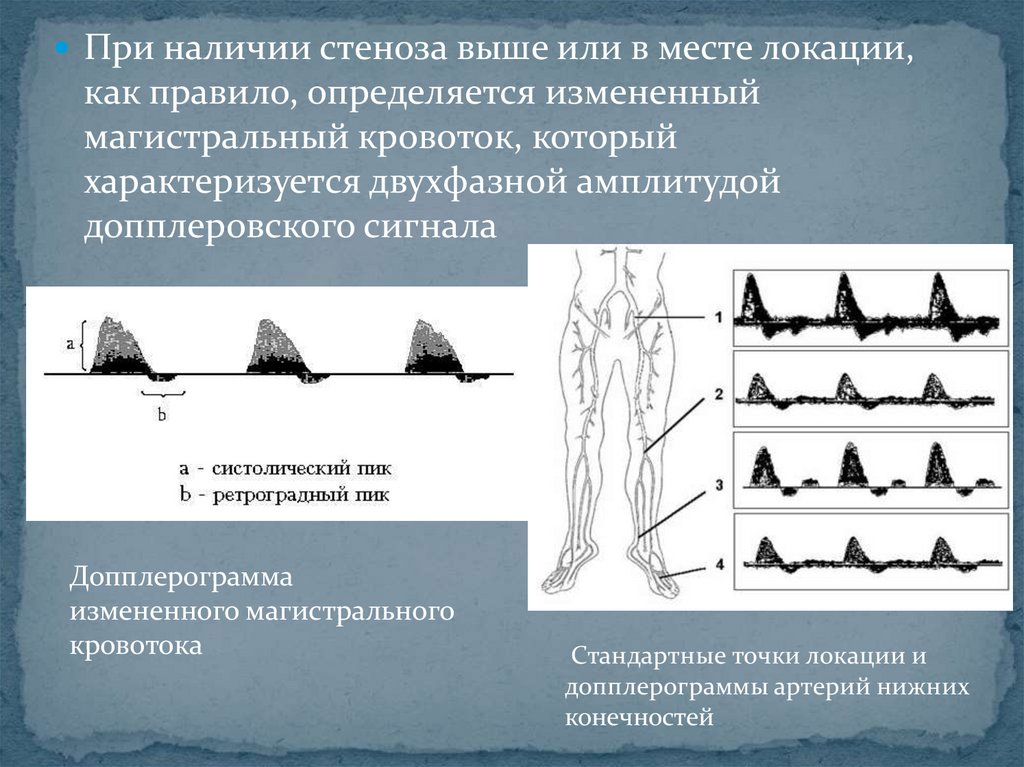 При наличии стеноза выше или в месте локации,как правило, определяется измененный