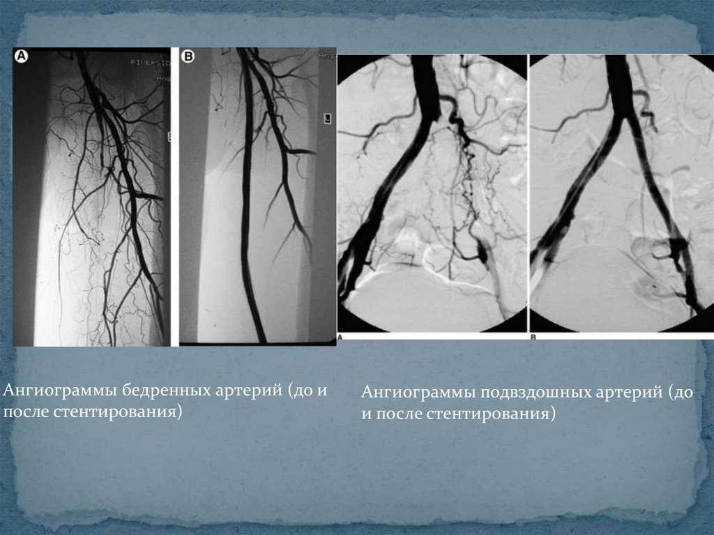 Ангиограммы бедренных артерий (до ипосле стентирования)