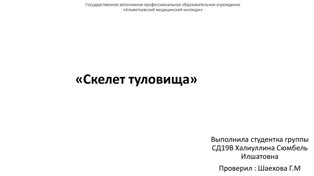 Государственное автономное профессиональное образовательное учреждение«Альметьевский медицинский колледж»
