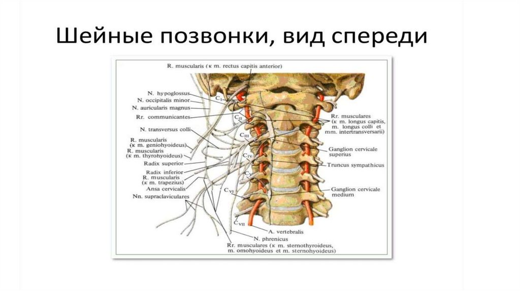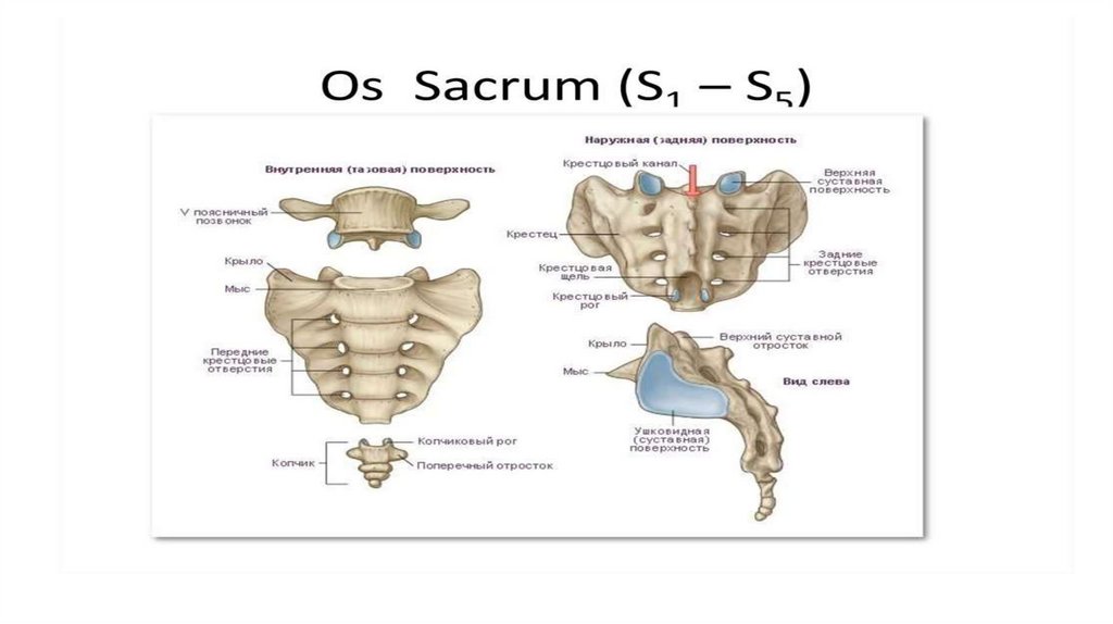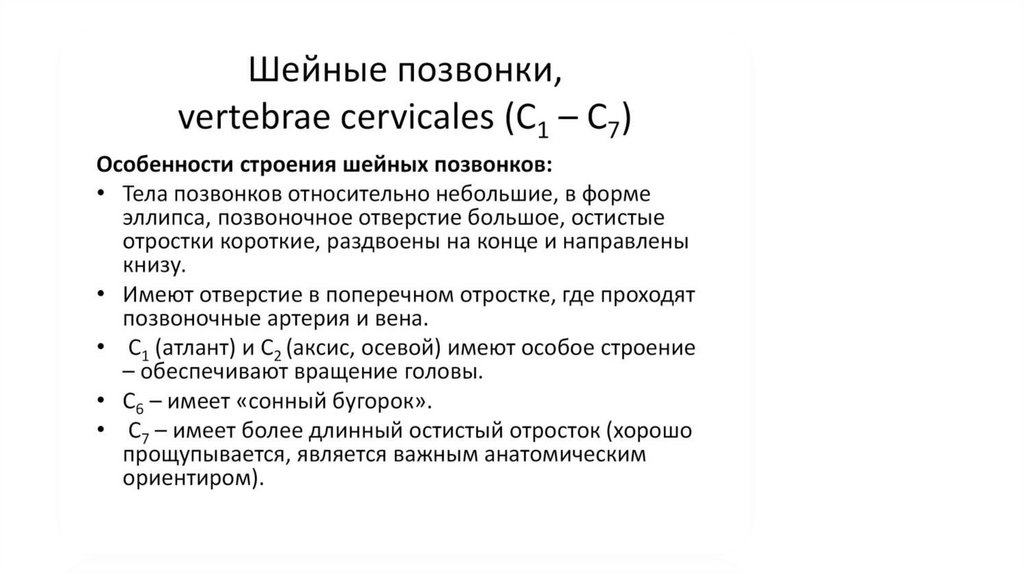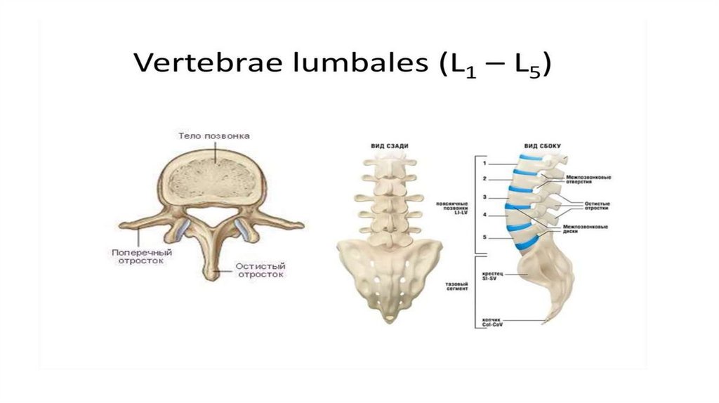 • Отделы позвоночника и особенности строенияпозвонков В позвоночнике выделяют 5 отделов: