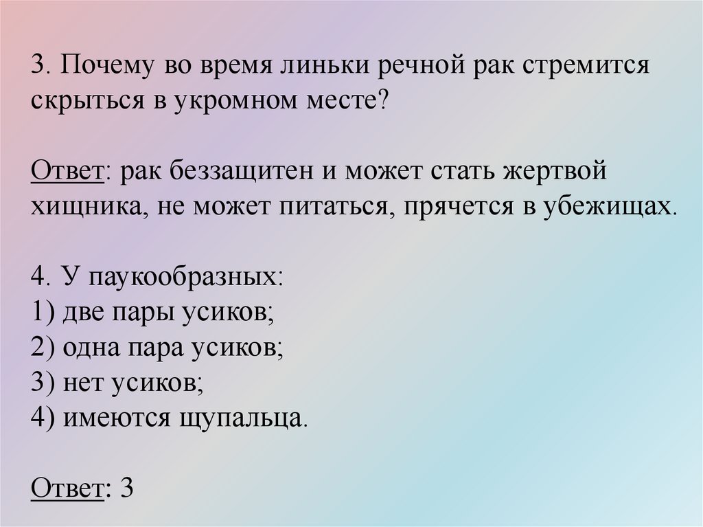 3. Почему во время линьки речной рак стремитсяскрыться в укромном месте?