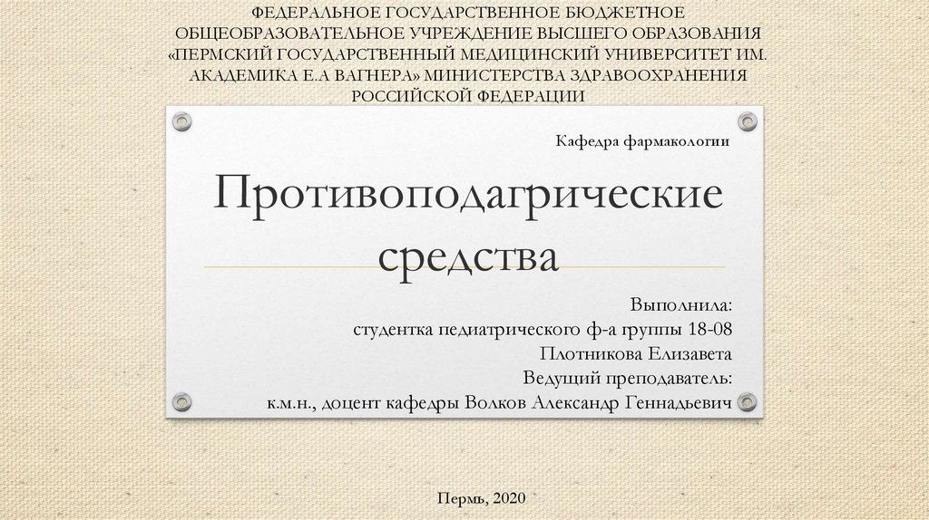 «ПЕРМСКИЙ ГОСУДАРСТВЕННЫЙ МЕДИЦИНСКИЙ УНИВЕРСИТЕТ ИМ.